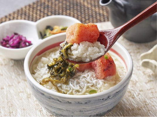 辛子明太子の程よい辛さとしらす、高菜漬けの風味が特製鯛だしと絶妙に調和。ピリッとした刺激と旨味が食欲をそそる、おすすめの定番メニューです。柚子胡椒で味を変えてお楽しみいただけます。