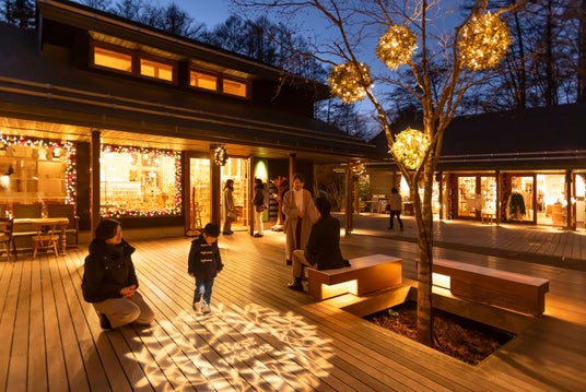 軽井沢星野エリアでは、2025年11月22日(土)から12月25日(木)までの期間、エリア全体を温かな光で包むクリスマスイルミネーション装飾を施します。「幸せの象徴」とされる「やどりぎ」の飾りが施された小さな街「ハルニレテラス」と、高さ10mのクリスマスツリーが輝く「もみの木広場」が遊歩道で繋がれます。また期間中、やどりぎの実に見立てた照明「やどりぎランタン」を手に、エリアの散策を楽しむサービスを提供します。