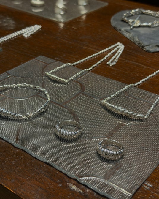 会期中には、構造美と静寂をテーマとしたジュエリーコレクションが披露され、