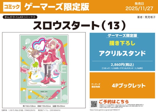 株式会社カードラボ ゲーマーズ(本社:東京都豊島区、https://www.gamers.co.jp/ 以下ゲーマーズ)は、2025年11月27日(木)より『スロウスタート』13巻発売記念POP UPを開催することをお知らせいたします。