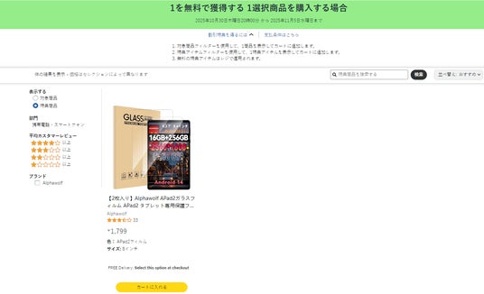 期間限定特典:1699円のガラスフィルムを無料で獲得する