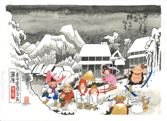 岡本肇作品展『七福神道中旅 ~歌川広重「東海道五拾三次」へのオマージュ』@横浜高島屋7階。11/5~11/18まで。原画、版画を展示販売。七福神ご一行様が日本中に笑顔と温もりを届ける旅が始まる。