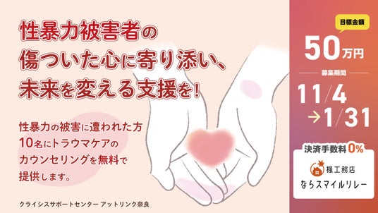 奈良で活動するNPOの想いや挑戦を“笑顔のリレー”としてつなぎ、地域をより良くする取り組みを広げていくことを目的としたクラウドファンディングです。本プログラムでは、寄付金の決済手数料を楓工務店が全額負担することで、寄付者の想いを100%NPOに届けることができます。地域を支える活動を応援したい方々が、安心して寄付に参加できる仕組みを整えることで、「人と地域を笑顔でつなぐリレー」を目指します。