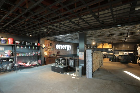 ショップ棟は24時間いつでも出入りできるのが嬉しい。レンタルコーナーには、テントやチェアなど豊富なラインナップのアイテムが所狭しと並ぶ。