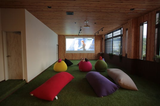 子供達に大人気なシアタールーム。スポーツ、映画、アニメなどを放映。