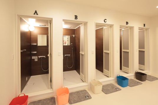 シャワールーム:男女別の個室タイプのシャワールームを完備。利用料は中学生以上300円、小学生100円で、管理棟で予約すれば利用できます。シャンプーやリンス、ボディソープ(各220円)などはショップ棟で購入可能です。