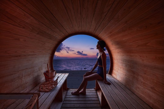 リゾナーレ小浜島のバレルサウナは、海に面した大きな窓が特徴です。碧く染まる海や、移り変わる空模様を眺めながら、プライベートサウナを体験することができます。またサウナ室では、セルフロウリュが可能。サウナストーンにかけるロウリュ水や、熱波を送る扇にもさとうきびを使用しているので、上品な甘い香りに包まれるアウフグースを自ら体験することができます。夕暮れ時に現れる絶景を眺めながら、さとうきびの香りに癒される、特別なサウナ体験です。