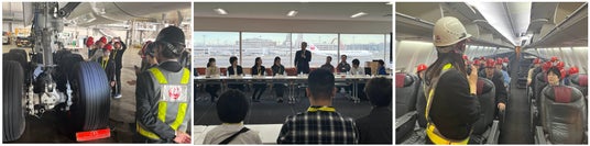 ワークショップ1日目の様子(JALグループ整備士が付き添い、一般の工場見学とは異なる範囲で見学)