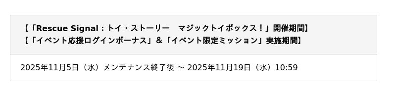今回の舞台は「Rescue Signal:トイ・ストーリー マジックトイボックス!」。