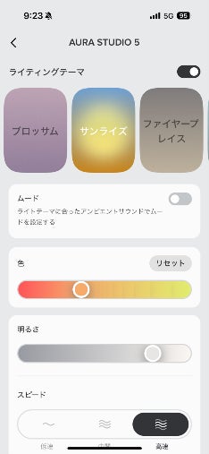 ●ライティングテーマにあわせたアンビエントサウンドを再生するムード設定