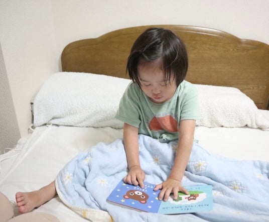 よしよしするとおめめが閉じるしかけがたのしい、寝かしつけに最適なおやすみえほんです。