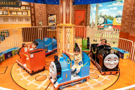 「トーマスタウン」は、トーマスたちのいる架空の島”ソドー島”の街並みを再現した屋内型テーマパークです。トーマスたちに乗ったり、クランキーの遊具で遊んだりすることができます。施設内で使える専用通貨「トーマスコイン」を使用して、お子さま自身で楽しむことができます。