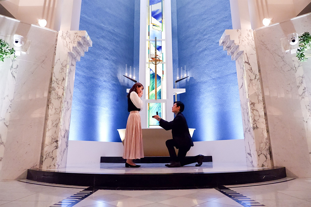 神秘的なチャペルを貸し切った一世一代のプロポーズ