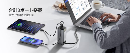 複数デバイスを同時に充電でき、スマホ・タブレット・ノートPCなどあらゆるシーンで活躍します。
