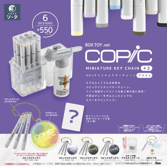 コピック×スタジオソータ「コピックミニチュアキーチェーン プラス2」(ボックストイ 550円(税込))を、販売いたします。