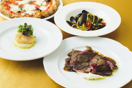 ナポリピッツァをメインに、魚介の前菜、ローストビーフ、デザートなど、クリスマスにふさわしい、贅沢で記憶に残る限定メニュー。