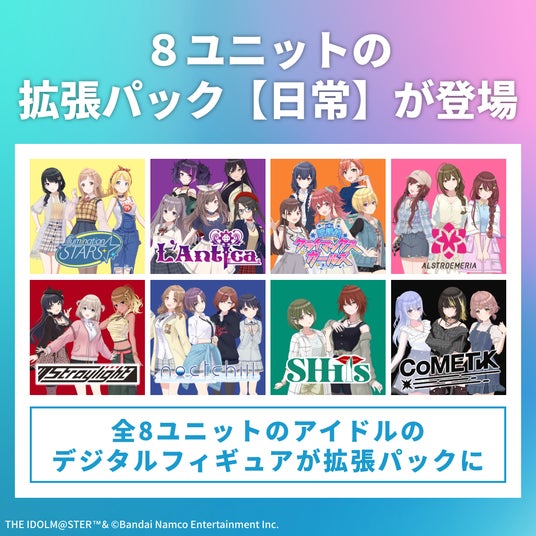 シャニマス専用にデザインされた「デジタルフィギュアボックス」と、8ユニット28人分のデジタルフィギュアを楽しめる「デジタルフィギュア拡張パック(全8種)」を販売します。
