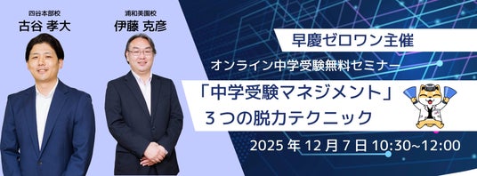 そんな悩みを抱える保護者様に向けて、大学付属中学専門の個別指導塾「早慶ゼロワン」(代表:野田英夫/東京新宿区)は、無料オンラインセミナー【ストレスからの解放!『中学受験マネジメント』3つの脱力テクニック】を2025年12月7日(日)に開催いたします。
