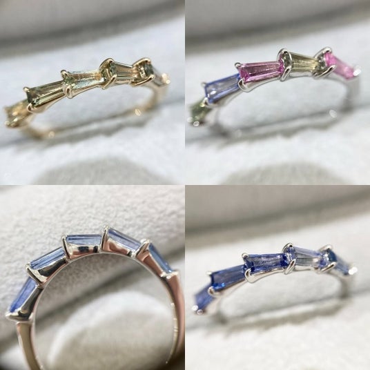 そのほか、テーパーカットのサファイアを5石並べた新作「Tapered Cut Sapphire Ring(テーパーカット サファイア リング)」や、プリンセスカットダイヤモンドのみで構成したデザインリングなど、多彩な新作・新色ジュエリーをご紹介いたします。