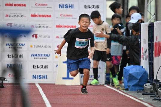 その後は、上位入賞者を対象にランニングクリニックが開催され、ゲストアスリートが個別にアドバイス。締めくくりには、男女1位の子どもたちがトップ選手と競う「ドリームレース」が行われ、緊張と興奮の入り混じる熱い展開に、会場は最高潮の盛り上がりを見せました。