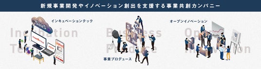 事業内容:インキュベーションテック事業、事業プロデュース/新規事業開発支援事業、オープンイノベーション事業、イノベーター人材育成支援、地方創生・地域イノベーション事業、イノベーション・ワークプレイス事業