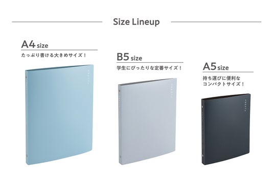 - A4サイズ、B5サイズ、A5サイズの3サイズをラインアップ