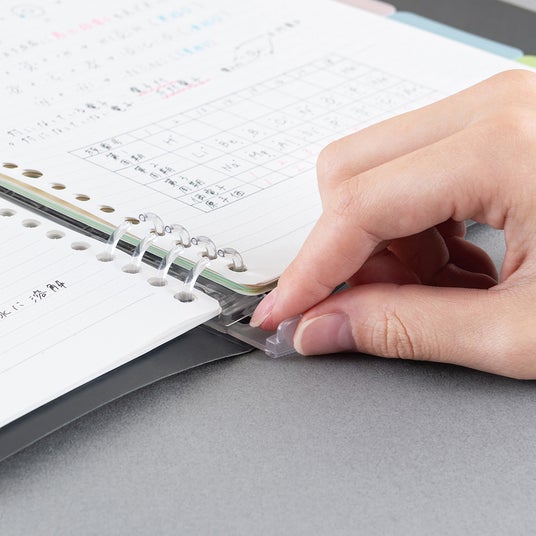 - 上下にリングが分かれたセパレートリングを採用したバインダーノート