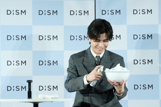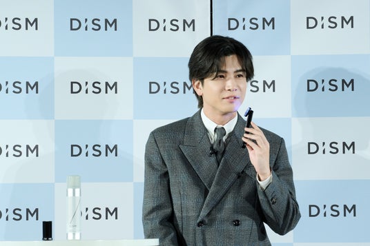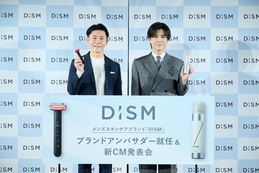 発表会では、リニューアルから約1年を迎えたメンズスキンケアブランド「DISM」のブランド説明、商品紹介の後、岩田剛典さんを起用した新CM「ディズム 美顔器 研究篇」「ディズム 白泡洗顔 飛び出る篇」 が初披露されました。