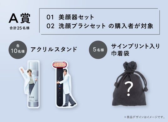 A賞 計25名:1.美顔器セット/2.洗顔ブラシセットの購入者様がご対象