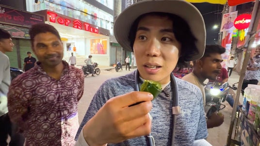 無事に目的地のランプルに到着したくるまは、町の食堂で夕食をとったあと、嗜好品として現地民に馴染みの深い“噛みタバコ”に挑戦。木の実などを葉で包んだ“噛みタバコ”初体験したくるまは、「歯が信じられないくらいキシキシします」「エナメル質が全部溶けました」と感想をコメント。旅に同行する大前プジョルジョ健太ディレクターから「めっちゃ歯に悪いらしいですよ」と告げられると、「俺いま虫歯治してる途中なんですよ」「やばいじゃん」と苦笑しました。