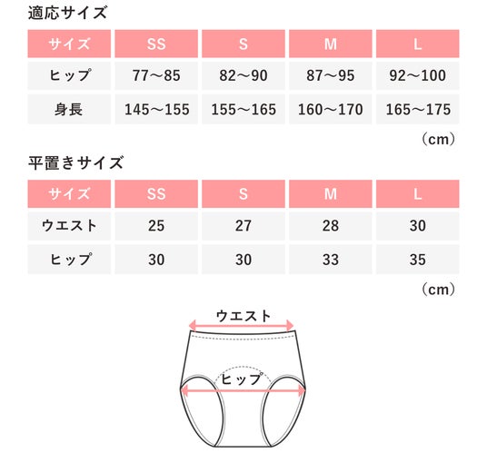 吸水性を兼ね備えた直ばき用のショーツです。毎日の冷え対策や、おりもの、毎月の不安な時、ブルーデイのはじめや終わりがけなどの少量の日に。「そろそろ来るかも」と感じる日にも安心です。急に来ても慌てない、ナプキンの漏れも安心。水分量が多い日は、ナプキンなどのサニタリー用品と一緒にご使用ください。