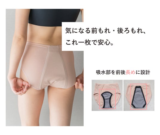 悩む方が多い前もれや後ろもれに対応できるよう、吸水部は前も後ろも長めの設計にしました。