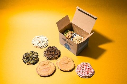 エルモ、クッキーモンスターの形をしたミニワッフルに、なめらかな口どけが特徴のチョコレートをコーティング。全8種のフレーバーからお好みの4個をお選びいただき、専用のワッフルボックスに詰めてお召し上がりいただくテイクアウト限定メニューです。ご家族やご友人へのお土産としてシェアしたり、ちょっとだけ食べたいという小腹を満たすおやつにもおすすめ。