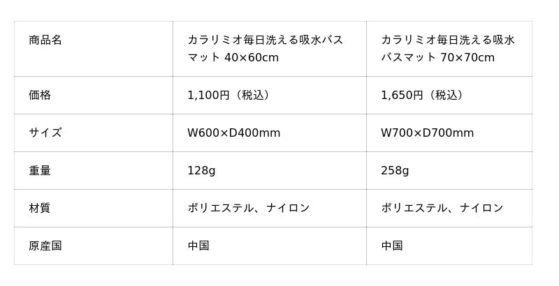 - 定番サイズ(40×60cm):一人暮らしのバスルームにもぴったり。扱いやすく乾きやすい、ちょうどいいサイズ。