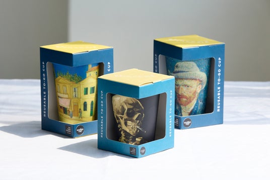 「たった週1回、使い捨てカップの代わりに“リユース”を選ぶだけで、廃棄物を減らす手助けになる」というメッセージを訴え続けながら、カップの素材リニューアルにも取り組んでいるEcoffee Cup。ラインナップの中でも人気シリーズの「ヴァン・ゴッホコレクション」の新柄3種が登場します。14ozの「Self-Portrait」(セルフ・ポートレート)は、ゴッホの数ある自画像の中から、1887年の「灰色のフェ ルト帽子の自画像」を採用。激しい筆致の中にも穏やかな表情が見えます。同じく14ozの「Yellow House」(イエローハウス)は、1888年に描かれた「黄色い家」(別名「アルルのゴッホ の家」)をモチーフにしています。パリからアルルに移住して借りたこの家では、一時期ポール・ゴーギャンと共同生活を送っていました。12ozの「Skull」(スカル)は「ヴァン・ゴッホコレクション」の中でも異彩を放つデザイン。1885年の作品「火のついた煙草をくわえた骸骨」を大胆にプリントしています。