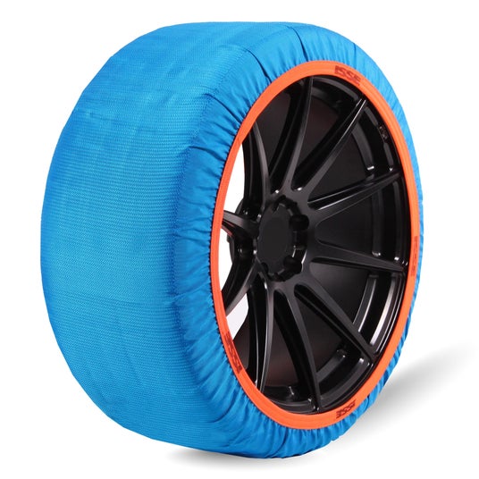 リサイクルモデルの生地は、環境に優しいだけでなく、見た目にも美しい鮮やかなブルー。スペインの工場で丁寧に編み上げられた再生ポリエステル繊維は、やわらかな質感と上品な発色が特徴です。雪道での安全を守りながらも、タイヤ周りをスタイリッシュに演出。機能性とデザイン性を兼ね備えた、新しい時代のスノーソックスです!