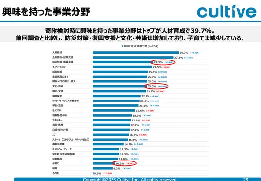 また、企業が興味をもつ企業版ふるさと納税の寄附募集事業分野の傾向変化にも焦点を当てております。