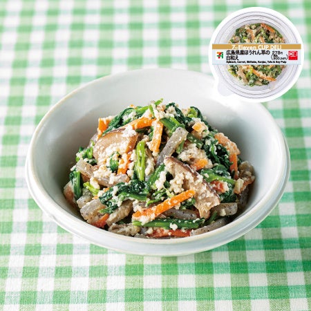広島県産ほうれん草を使用した定番の副菜。地域で馴染みのある ほんのり甘口な味わいの白和えです。ほうれん草をボイルした後に、だしに漬け込む工程を追加し、だしの風味をアップしてリニューアル。