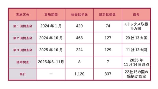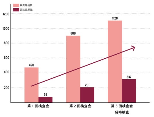 2025年10月に実施した第3回エイジングケアワイン認定検査会において、検査を実施した224銘柄のうち129銘柄を「エイジングケアワイン」として新たに認定。また、2025年6月より開始した「随時検査」制度でも7銘柄が認定され、認定ワインは累計337銘柄に到達しました。