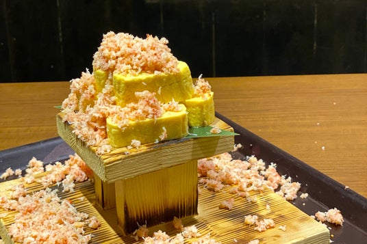 名物!かにぶっかけ だし巻き玉子 1,099円(税込)脅威の注文率90%以上を誇る当店の超名物「かにぶっかけ出し巻き玉子」。スタッフの「よいしょ!」の掛け声とともに、赤字覚悟で蟹を豪快にかけ続ける人気の一品です。