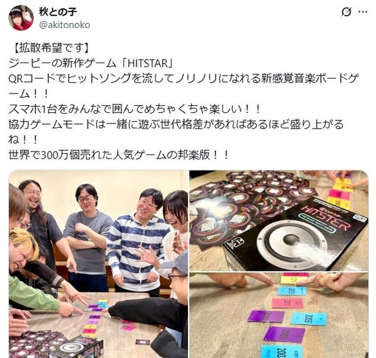 ジーピーの新作ゲーム「HITSTAR」 QRコードでヒットソングを流してノリノリになれる新感覚音楽ボードゲーム!!