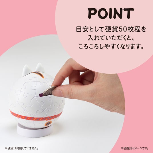 「パズころりん(Puzz Cororin)」は、お金を入れると起き上がりこぼしのようにころころゆれる3D球体パズルです 。ころがっても起き上がる縁起の良い招き猫で、一層の幸福を祈願してみてください 。