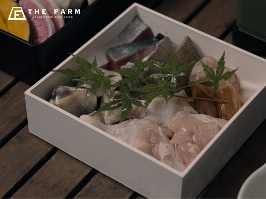 水郷佐原のブランド鶏「錦爽鶏」や、THE FARMの畑で秋から冬にかけて採れる旬野菜が彩りを添えます。