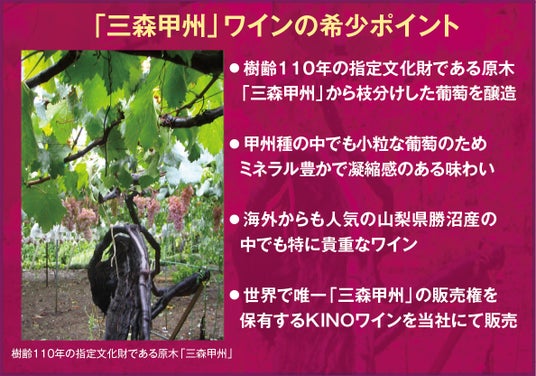 ● 世界で唯一「三森甲州」の販売権を保有するKINOワインを当社にて販売