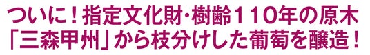 ついに!指定文化財・樹齢110年の原木「三森甲州」から枝分けした葡萄を醸造!
