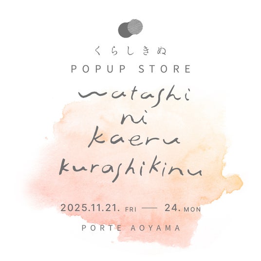くらしきぬは、まもなく2025年12月6日にブランド創設13周年を迎えます。今年リブランディングを行い、新しいコンセプトを「わたしに還る、第一歩」と定めました。くらしきぬの実店舗は、倉敷美観地区内にある「くらしきぬ倉敷本店」の一店舗のみです。今回のPOPUPストアは、日頃オンラインショップでお買い物を楽しんでくださっているお客様に、天然素材にこだわった製品の心地よい肌触りを、手に取ってお確かめいただける貴重な機会となります。