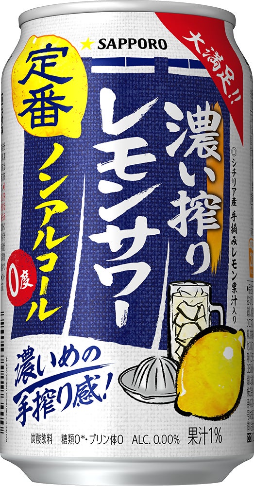 「サッポロ 濃い搾りレモンサワー ノンアルコール」は、居酒屋で提供されている手搾りサワーのような本格感のあるノンアルコールレモンサワーです。シチリア産手摘みレモン果汁とレモンエスプレッソエキスを使用した、しっかりすっぱいレモン味“濃いめ”の味わいが特長です。