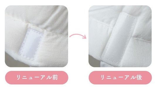 今回のリニューアルでは、日々変化する赤ちゃんの体格差にきめ細かく対応できるよう、マジックテープの長さを最適化。これによりあご紐の調整幅が拡大し、首紐の長め/短めいずれの合わせ方でも頭部にぴったりフィットします。動いてもズレにくい装着感を実現し、成長期のお子さまをやさしく支えます。