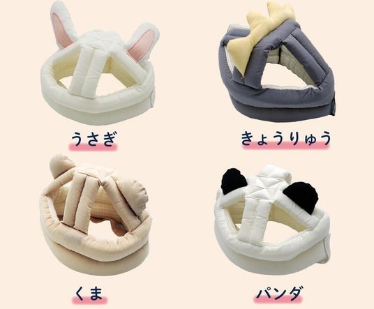 つかまり立ち・ハイハイ・一人歩きなどで動き始めた赤ちゃんの頭をやさしく守るヘルメットです。かわいらしいアニマルモチーフデザイン4種に加え、簡単サイズ調整・通気性・クッション性を追求。