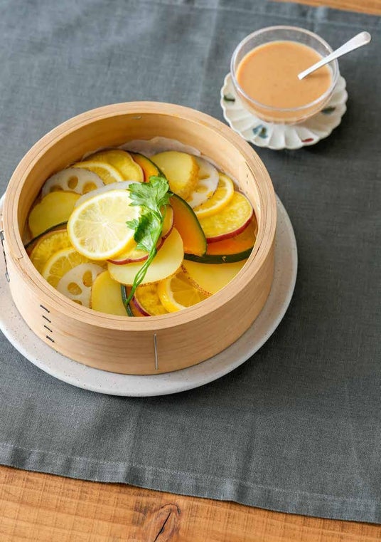 いろいろな野菜を一気に調理できるのも「蒸し料理」の魅力。カラフルな野菜を入れれば、食卓が華やかになります。また、キャベツや水菜などをフライパンで蒸せば、あと1品がササッと完成します。せいろなら2段活用して複数のレシピを同時調理することも可能です。